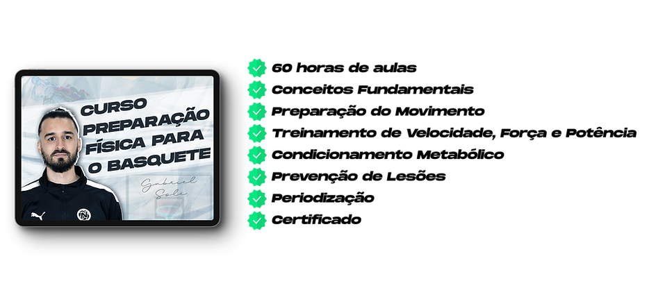 Ciência e prática alinhadas em mais de 60 horas de aulas que vão te ensinar tudo que você precisa saber para começar ou dar continuidade na sua caminhada com a preparação física específica pro basquetebol. O curso mais completo do Brasil para universitários, preparadores físicos e treinadores que desejam aumentar a performance de suas equipes!